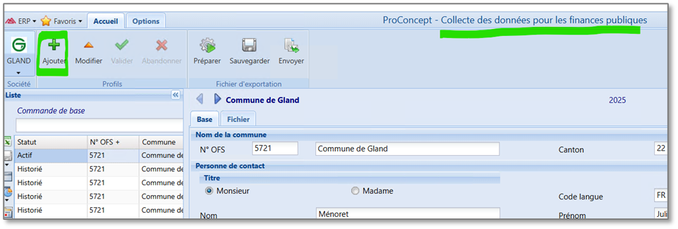 Cette opération historise l’export précédent et reprend les données d’en-tête pour en vue d’un nouvel export.