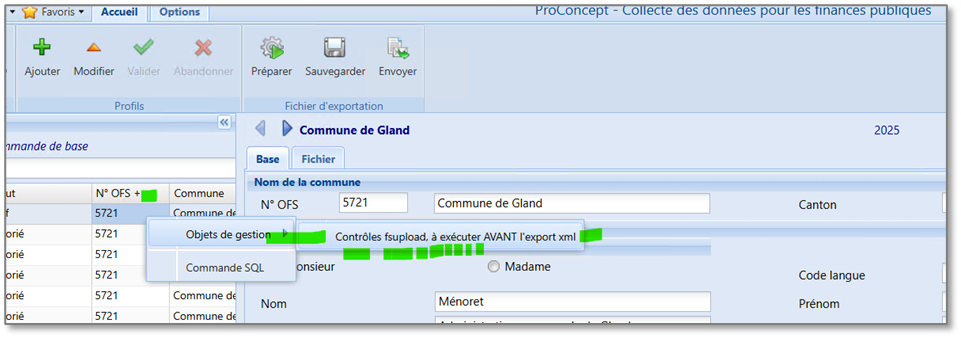 mais AVANT de [Préparer] les données, cliquer-droit sur le n° OFS du volet de gauche et appeler la fonction de contrôle :