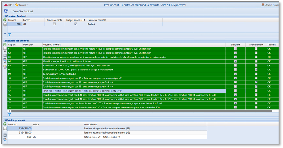 Lors du dépôt des comptes ou du budget sur la plateforme fsuploads de la confédération, des contrôles métiers sont effectués sur le fichier XML. Avant de générer le fichier XML depuis l’objet Collecte des données pour les finances publiques vous pouvez effectuer ces mêmes contrôles sur vos données. La marche à suivre est décrite ci-après.
