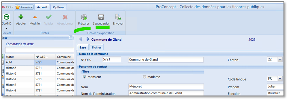 Si les contrôles sont OK, procéder à la préparation des données puis à la sauvegarde :