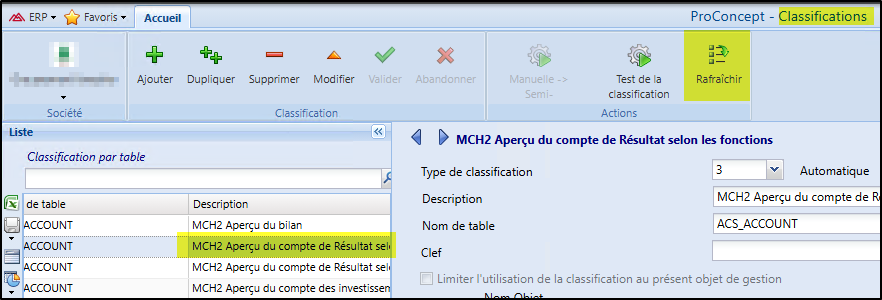Se positionner sur la classification à mettre à jour, puis “Rafraîchir”