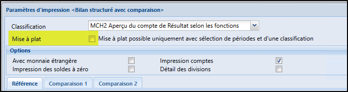 Exemple ici avec le rapport “Bilan structuré 2 comparaisons”.