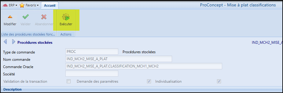 Si disponible, utiliser l’objet “Mise à plat classifications”, cliquer sur “Exécuter”.