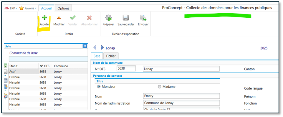 Puis, depuis l’objet de gestion « Collecte des données pour les finances publiques » :