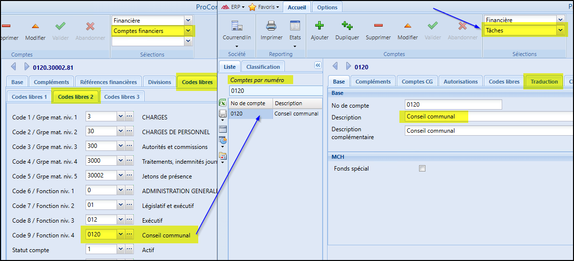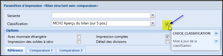 Une fois les libellés modifiés, lancer à nouveau le rapport en cochant la case “Mise à jour de la classification”, afin que les libellés se mettent à jour (ou utiliser l’objet “Mise à plat des classifications MCH2” si disponible)